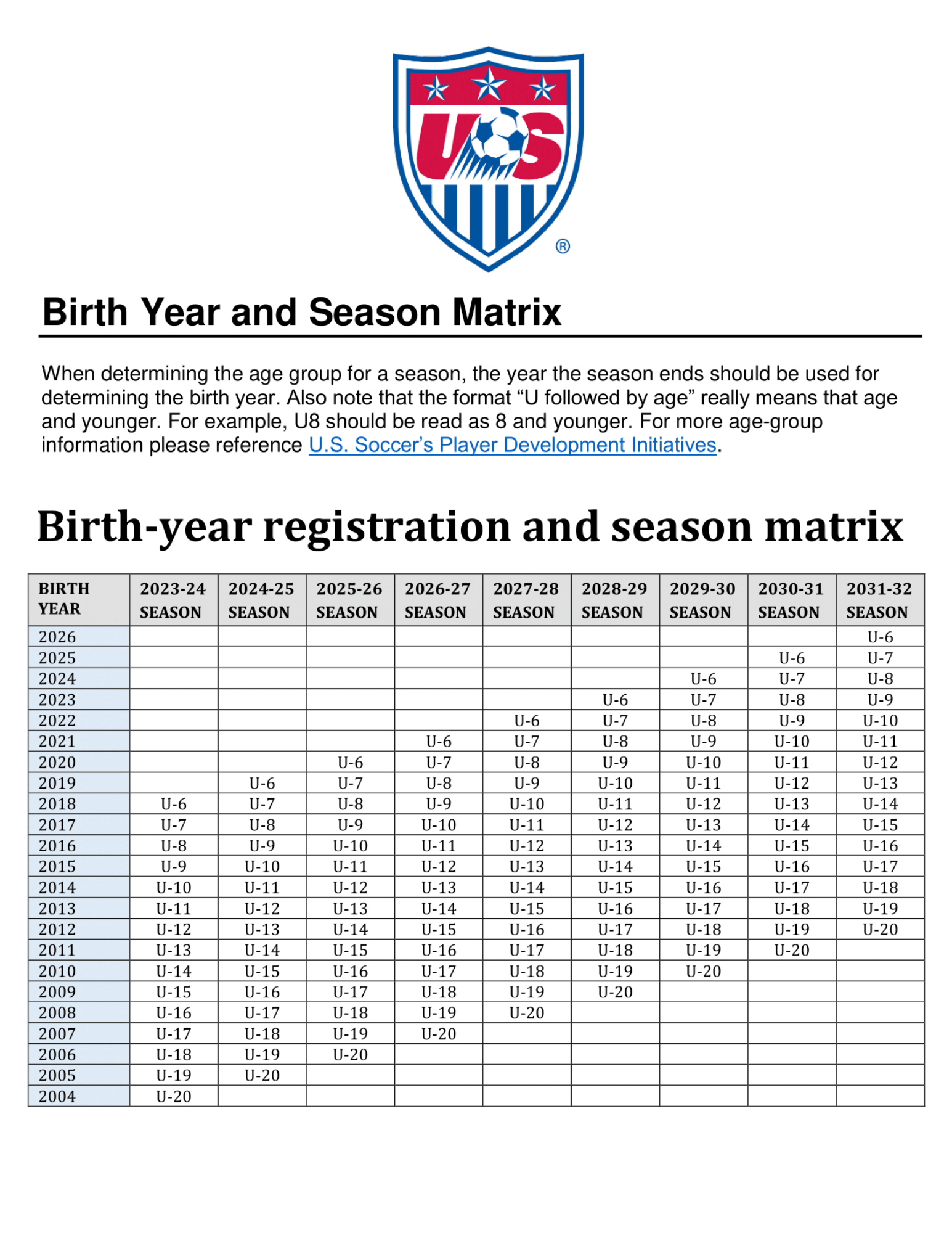 Use Birth Year Chart above to figure out what age group player will belong to in 2025. Come to the tryout for that age group.